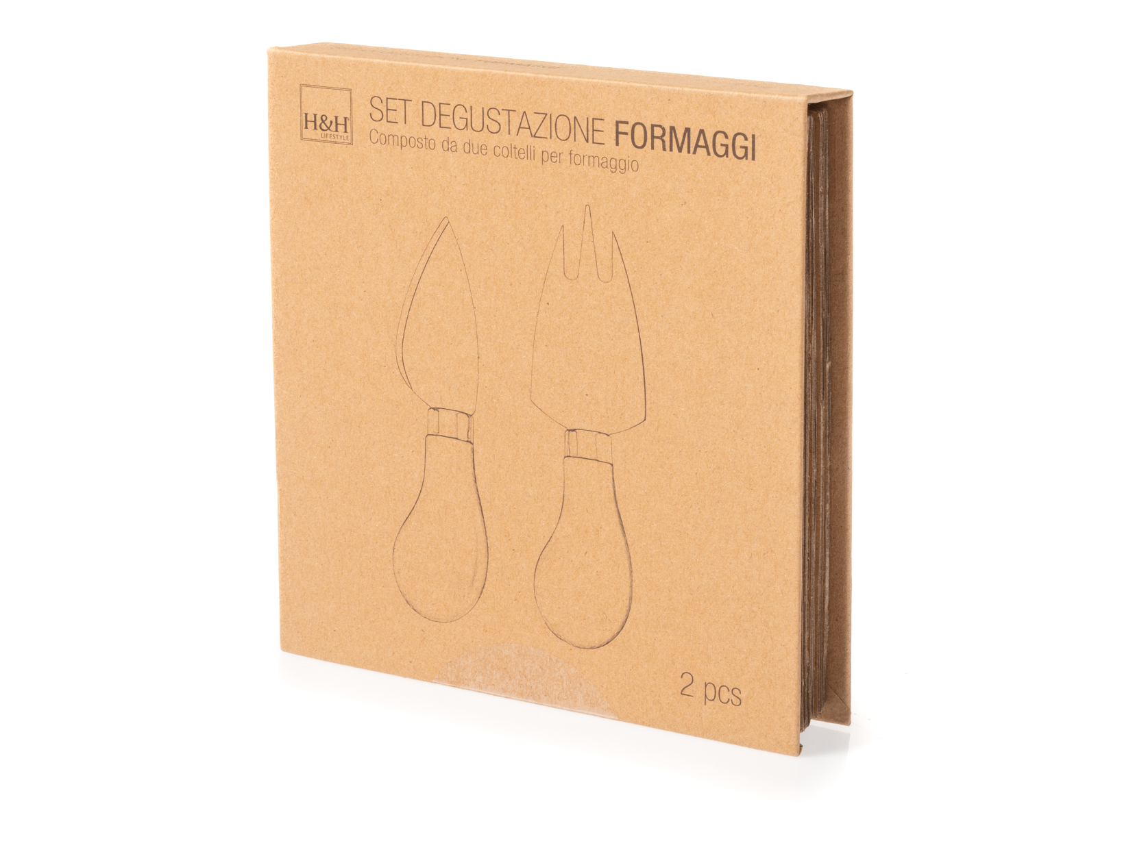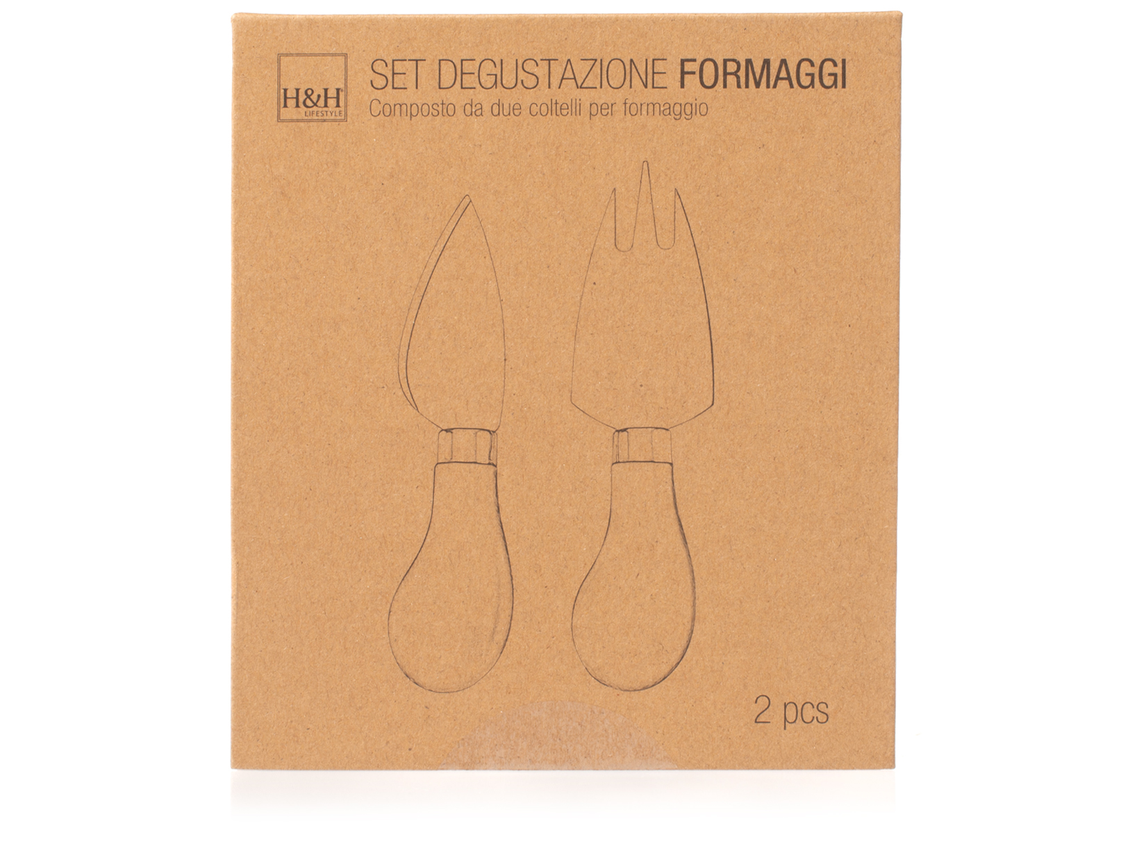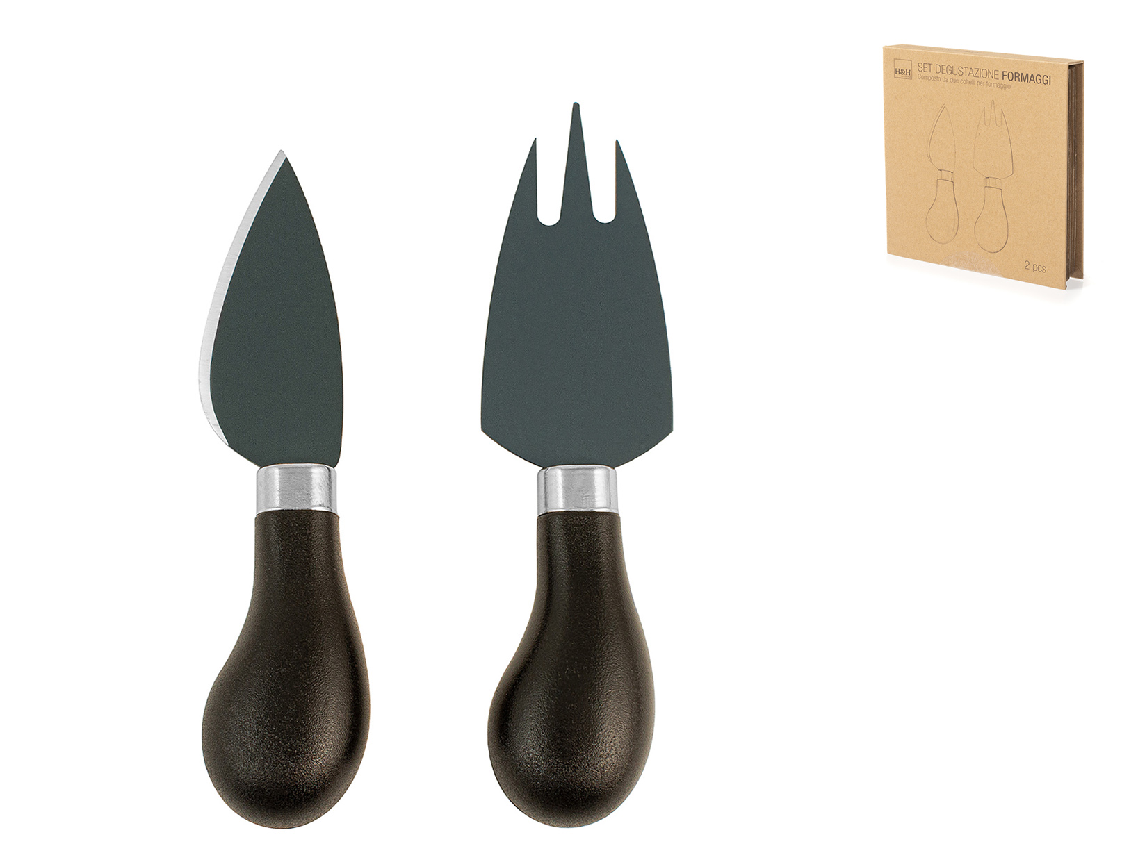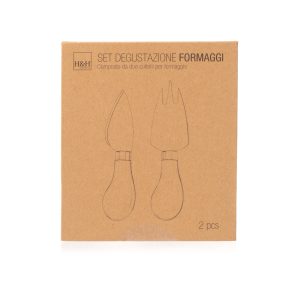 Set cutit si furculita pentru branzeturi, H&H, Inox& Lemn